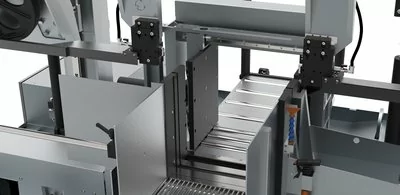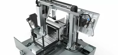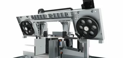 Bandsägevollautomat mit Zwei-Säulen-Führung für Serienschnitte insbesondere in schwer zerspanbaren Materialien und Vollmaterial.